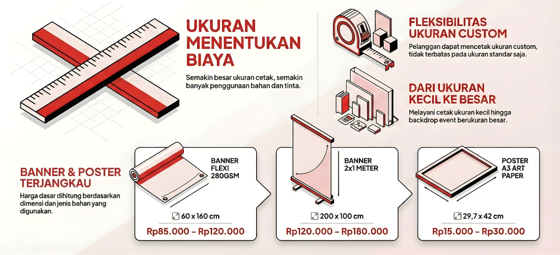 | Banner 2x1 meter | 200x100 cm | ± Rp120.000 – Rp180.000 |