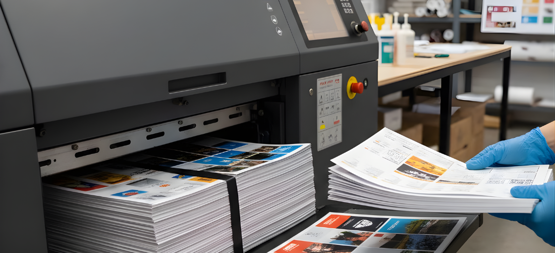 Flyer, brosur, poster A4–A3, kartu nama—ini semua masuk ke kategori digital printing kertas.
