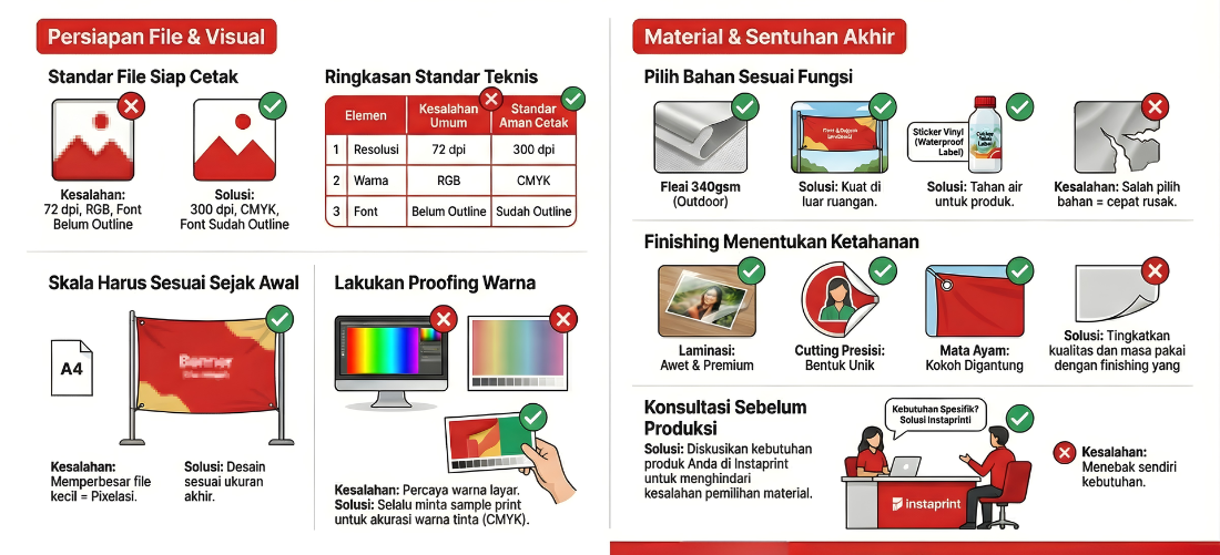 Lima hal ini yang paling sering bikin banner pecah, sticker cepat rusak, warna melenceng, atau merchandise terlihat kurang profesional.
