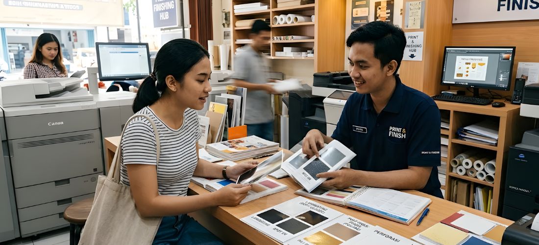 Setiap produk memiliki kebutuhan berbeda. Banner promosi diskon berbeda dengan kemasan makanan. Seragam komunitas berbeda dengan plakat penghargaan. Karena itu, konsultasi sebelum cetak sangat penting agar semua detail sesuai sejak awal.