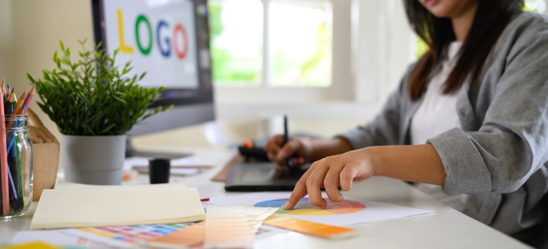 Konsistensi adalah kunci. Kalau warna logo kamu biru muda, tapi bannermu merah, dan brosurmu ungu — pelanggan bisa bingung: ini toko yang sama atau franchise beda planet?